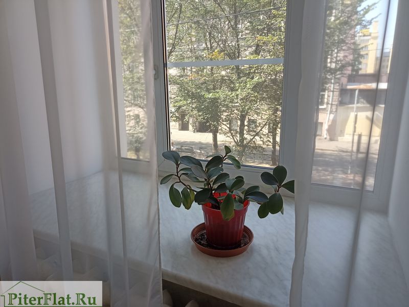 На окнах в комнате бархатные шторы, гардины. В окнах стеклопакеты (звуко- и теплоизоляция), открывающиеся в двух плоскостях.
